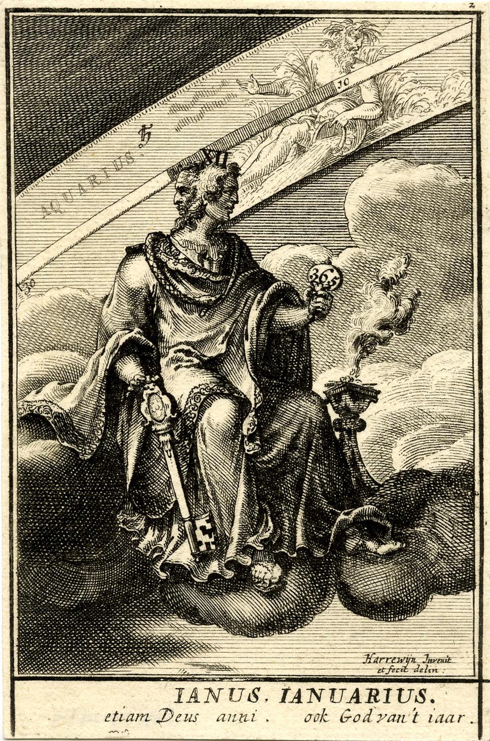 January is “the month of Janus”, the Roman god of beginnings and endings. Janus presided over doors and gates – appropriate for the beginning of the year. Indeed, Janus was usually depicted with faces looking backward and forward, as is characteristic of a new year.