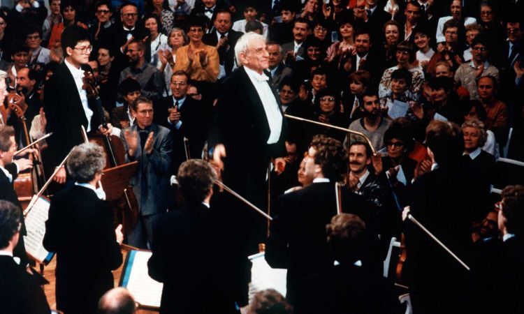 Bernstein during the East-West Concert in Berlin, Dec 25, 1989 © dpa