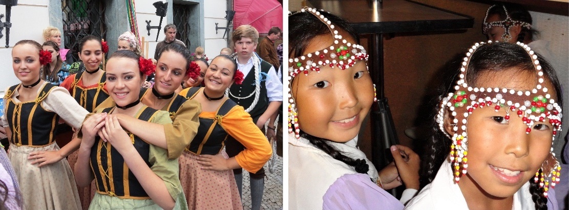 Left: Young ladies from Catalonia, Spain and local Austrian dancers getting ready for their performance